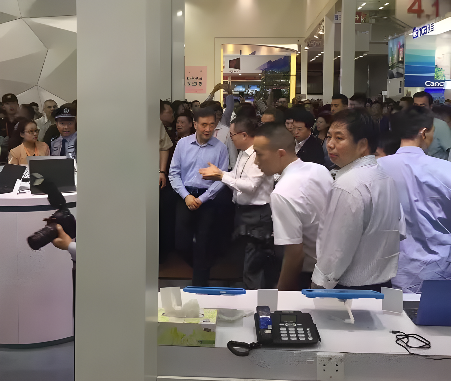 10月17日上午,乌拉圭总统塔瓦雷·巴斯克斯一行专程来到电子消费品及信息产品展区。在广东省人大常委会主任黄龙云、副省长何忠友等多位领导的陪同下,巴斯克斯总统对广交会的历史、规模表现出了浓厚兴趣,并最终在希科普的展位前停下了脚步 。